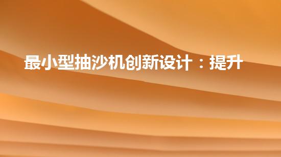 最小型抽沙機(jī)創(chuàng)新設(shè)計(jì):提升效率的抽沙設(shè)備如何改變產(chǎn)業(yè)格局?